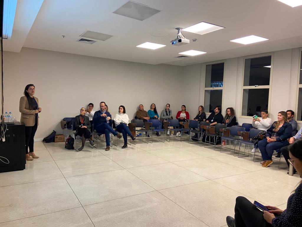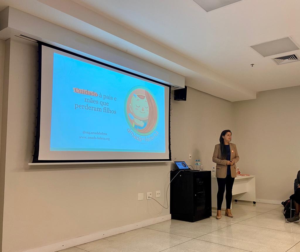 O encontro teve como tema “Um ato de cuidado eterno: a atuação do profissional frente ao luto parental” e contou com a palestra da presidente da ONG Amada Helena, Tatiana Maffini. O objetivo foi discutir a importância do cuidado com as famílias que passam pelo processo de luto, especialmente quando se trata da perda de um filho.